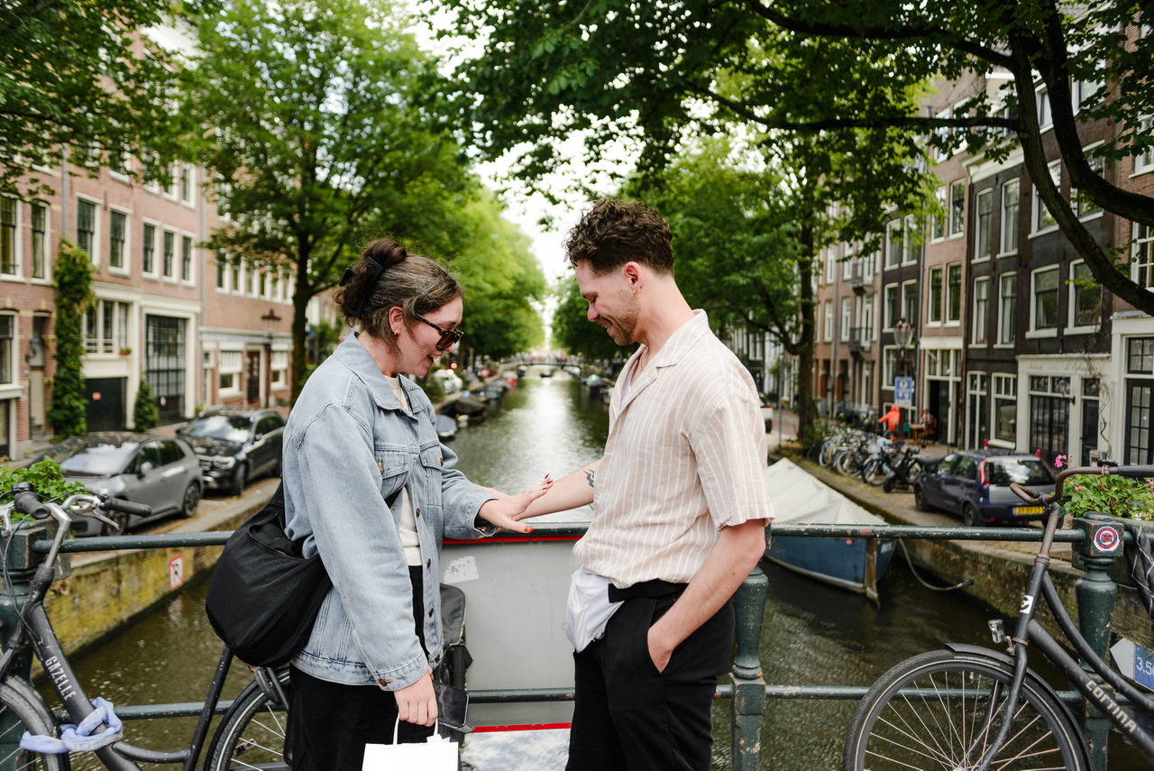 Amsterdam isn’t a city that needs big gestures to feel romantic; it’s in the details: the sound of water under a bridge, the light through the trees, or the way two people laugh in between moments. When you find your spot, you’ll know it’s right.
