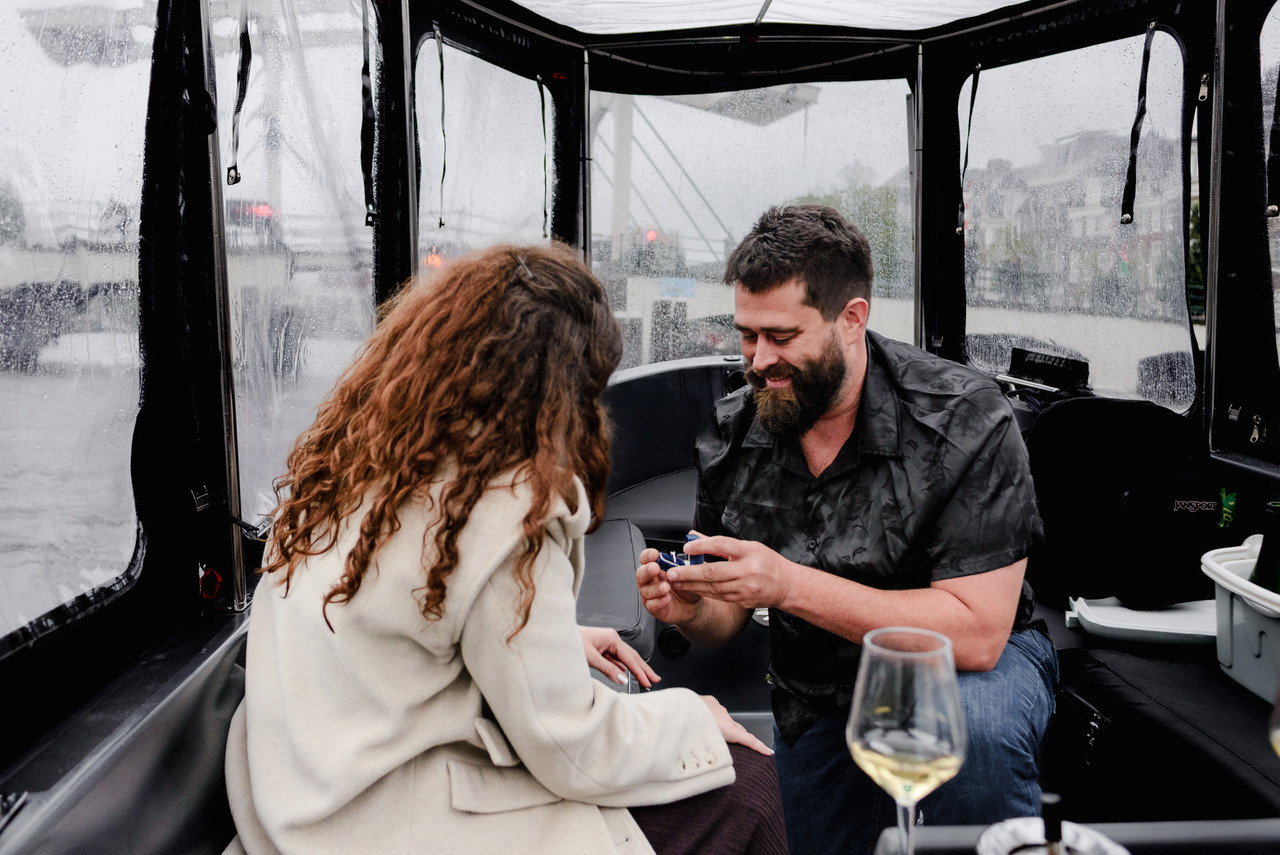 One thing to decide is how you would like your photographer to capture it: from inside the boat or from the shore for that wide, cinematic view, joining you on board right after the proposal, or leaving you to enjoy the moment in private. Whatever you choose, it will feel deeply personal and full of emotion.