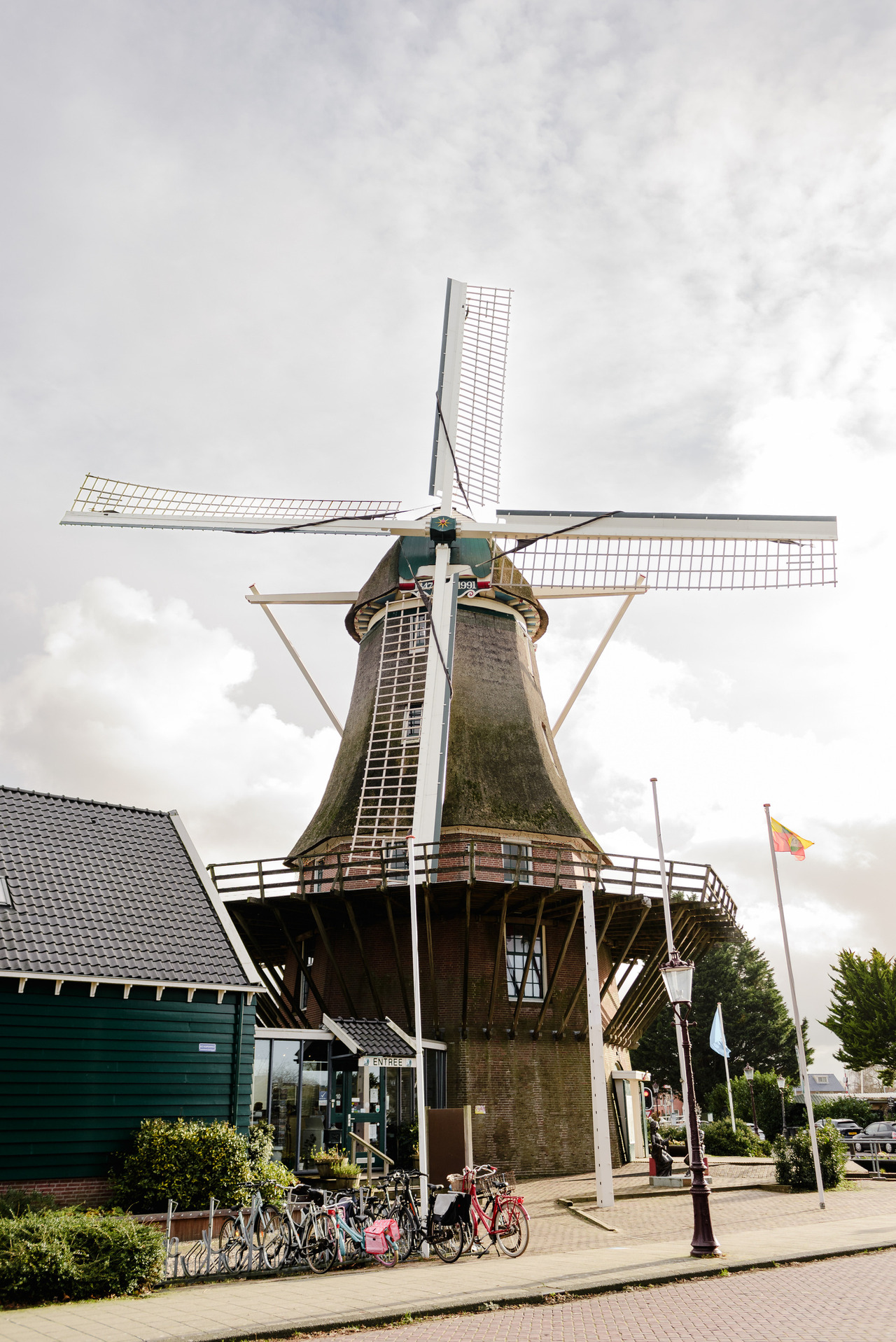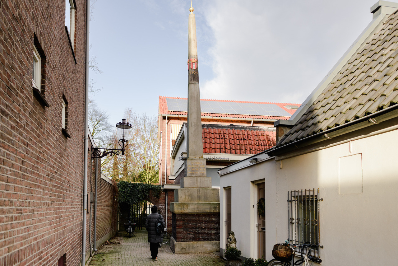 The presence of the Sloten Windmill reinforces this relationship between architecture and landscape. The mill is not decorative; it exists as part of a system that once protected the land from water. Nearby, boundary stones and old infrastructure markers reveal how space was measured, protected, and organized long before modern urban planning.