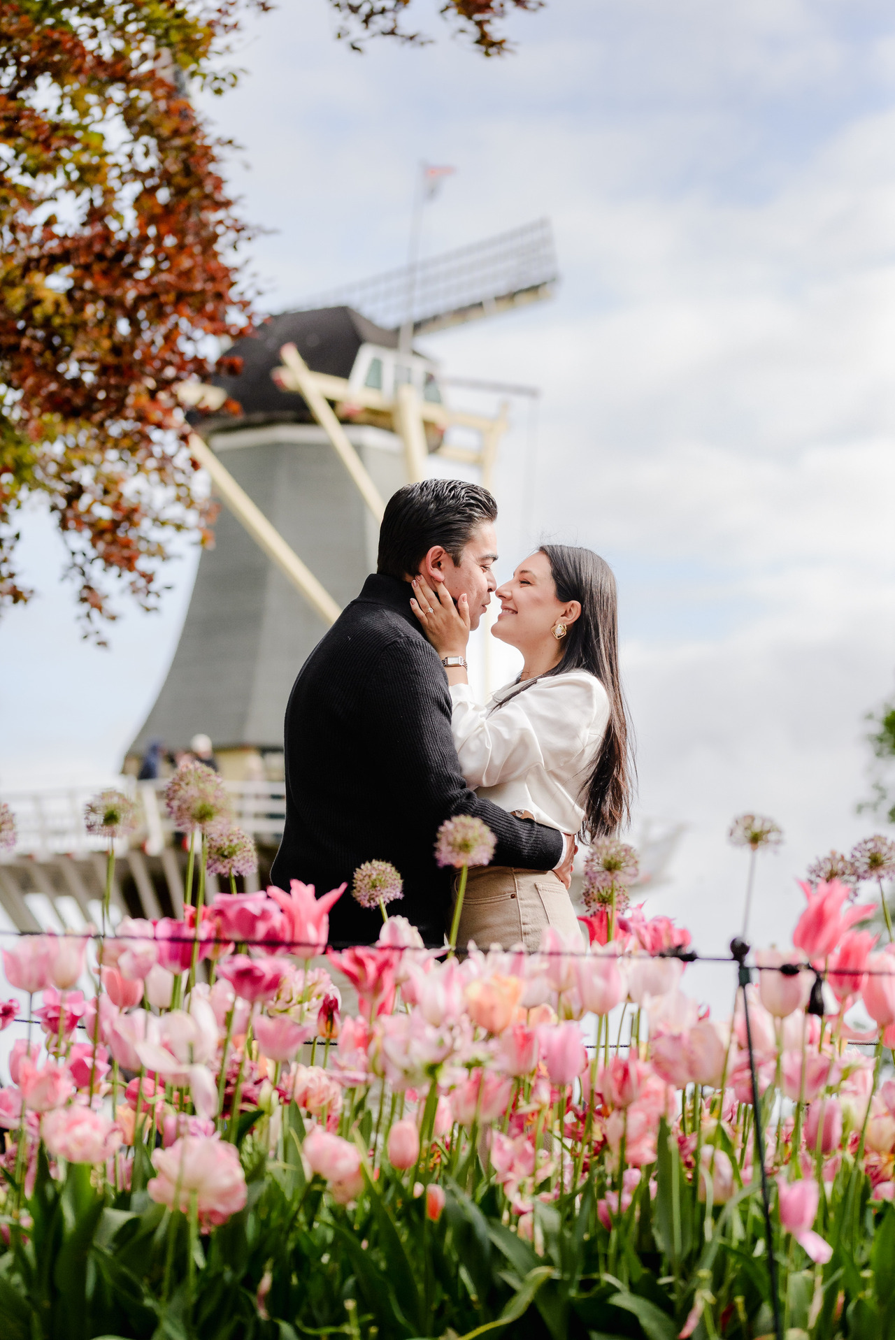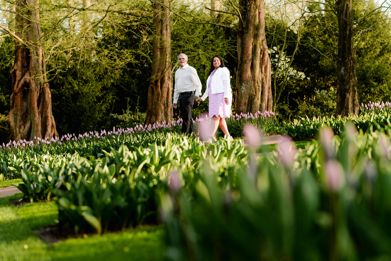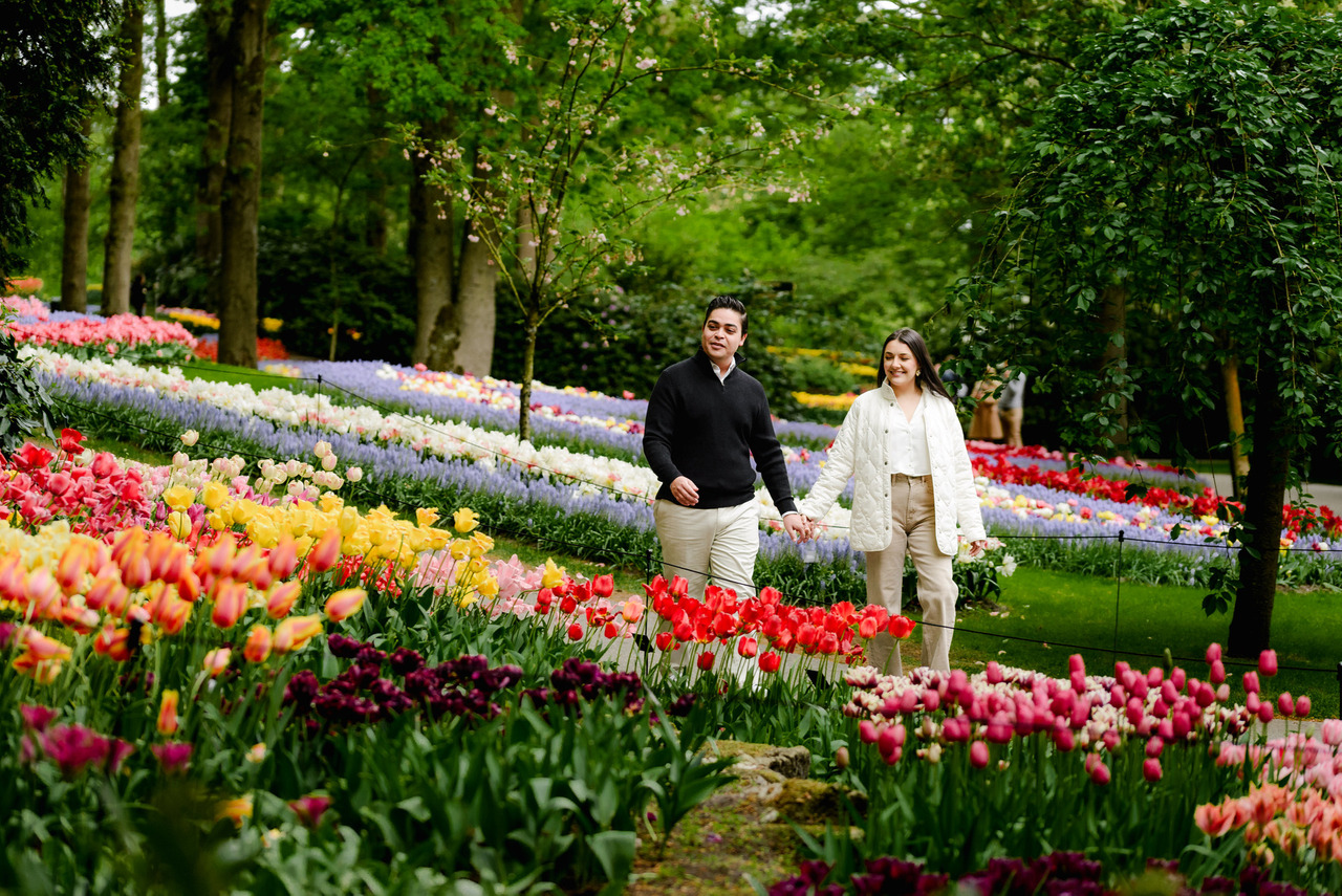 When I plan a session at Keukenhof, I am already thinking about how the gardens will look in the frame. Angles, distance, light, and background all matter. If a fence appears in a way that distracts from the image, it is handled carefully during editing so your photos stay clean, natural, and focused on the moment you are living.