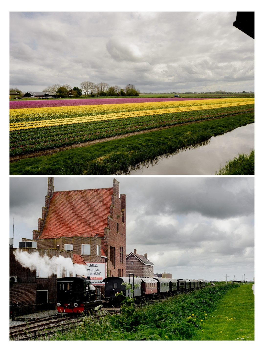This is not a typical museum visit where you walk through rooms and read signs. The main attraction is the journey itself. You board a historic steam tram in Hoorn and travel slowly through the countryside all the way to Medemblik, then back again. During my visit, tulip fields were blooming along the route, which made the experience even more special.
